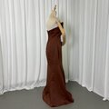 カラードレス テラコッタ色 ベアトップ 編み上げ 細見えシルエット デザイン感 2次会 前撮り