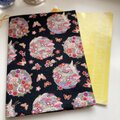【B5サイズ用】和風 着物のような花柄 鶴に蝶 ノートカバー 教科書カバー ブックカバー