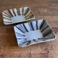 長四角の浅鉢で、柄がブルーとオレンジの2種類あります。