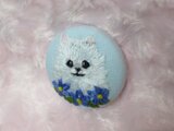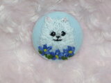 ポメちゃんと わすれな草の 刺繍です。