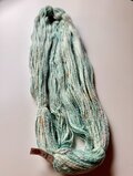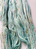 ホワイトとターコイズブルーのメリノに、邪魔にならないくらいに少量のリサイクルサリー繊維を混ぜました。