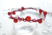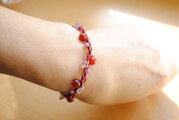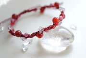 落ち着いた赤色の木の実のようなレッドアゲートとフローライトのお星さまを編み込みました。