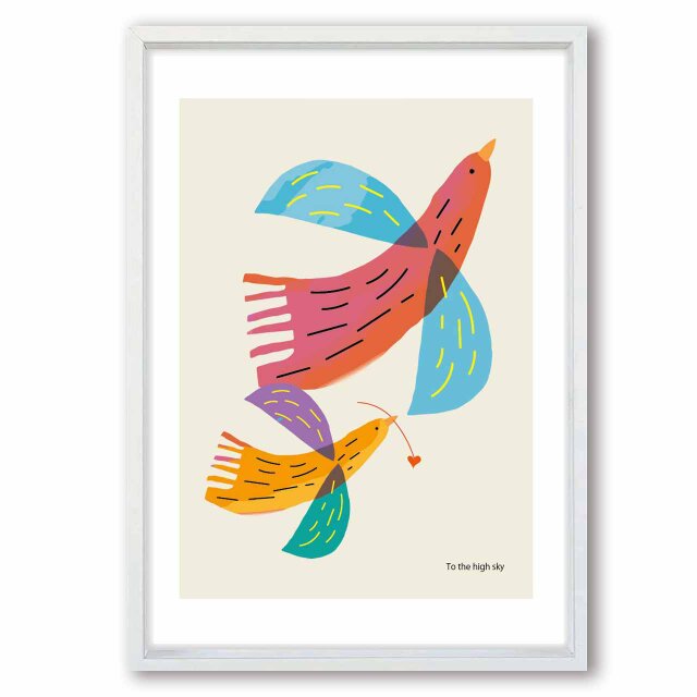 大空をのほ〜んと飛ぶ鳥たち Love bird モダンポスター。