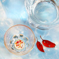 そのような景色を酒器の中に再現できないかと、ガラスの猪口の底に秋の池の景色を閉じ込めてみました。