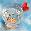 落ち葉舞う秋の池の中を泳いでいる鯉を上から覗いているような、楽しいガラスの盃です。