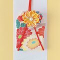 素敵なお守り袋が2つ届きました。 絞りの生地の色合いと大輪の花がとても華やかでキュートです。 白梅のものは、奥ゆかしさと気品を感じました。 どちらも大変気に入りました。大切に使わせていただきます♪