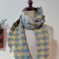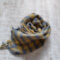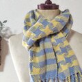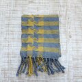 北欧っぽい風車織りミニマフラー 手織り ブルーグレー&レモンイエロー