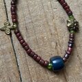 これをトップに全体をビルマの古いビーズ。懐かしのチョコBABYみたいな色とカタチのビーズを全体に繋いで