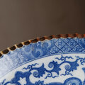 素敵な文様◆大きなサイズ感。伊万里 花唐草文印判イゲ大皿 骨董・antiques 暮らしに 明治〜大正期