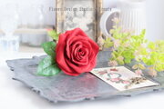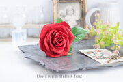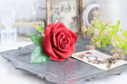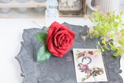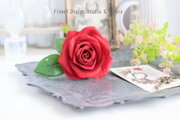 10㎝の赤い薔薇と朝露の葉っぱの髪飾り(シングルワイヤー仕様) 花径10cm フローレス 赤い薔薇 髪飾り フラメンコ 赤 バラ