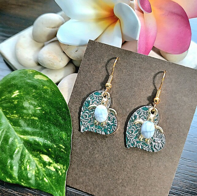ハワイアンジュエリーデザイン♡ハートシルバー ホヌホワイトターコイズカラーピアス No.556
