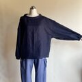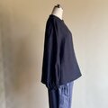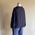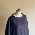 リネン◆ボトルネックブラウス◆ネイビー◆M・L・LL(リネン100%、中厚)