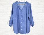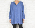 柔らかなコットンダブルフェイス長袖スキッパーボタンシャツ ヴィンテージブルー