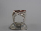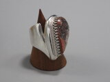 リングのサイズは12号、重さは25g、最大幅は27mm、手のひら側は9mm、金属部分は純銀です。