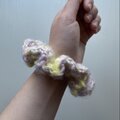 ふわふわとした毛糸で編んだ、ボリューム感のあるシュシュです。