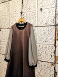 焦げ茶カットソー&シースルードットパフスリーブワンピース