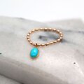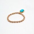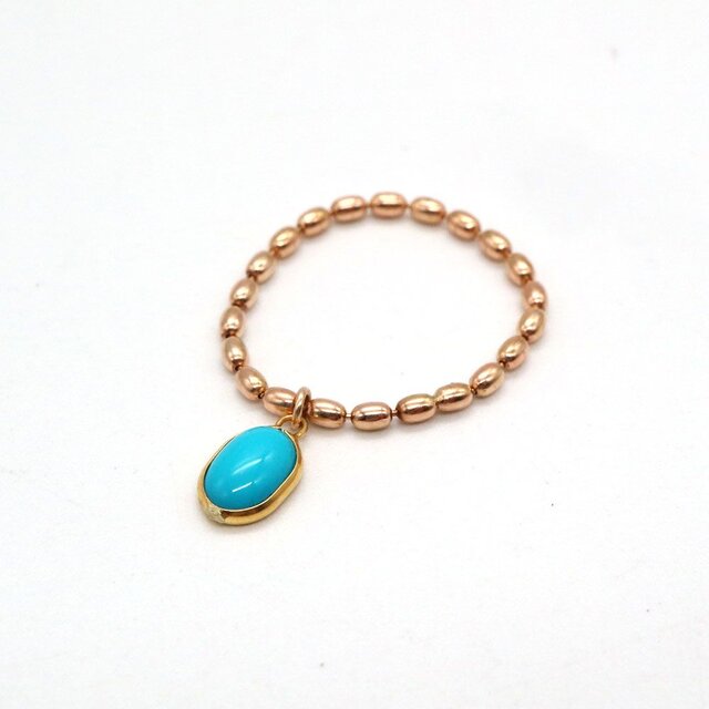 プチサイズのターコイズを丁寧に14Kでフクリン留めしたチェーンリング。ボールチェーンタイプのリングなので、重ねづけもおすすめです。