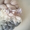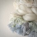もこもことした羊毛やモヘヤ、コットン、極細糸、ファンシーヤーンなど素材にもこだわり複雑に組み合わせています。