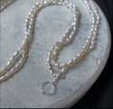 小粒の淡水パールは雪をイメージし、まるで氷の様な透明感は、表面を細工してあるクリスタルクォーツで雪の結晶を現しています。
