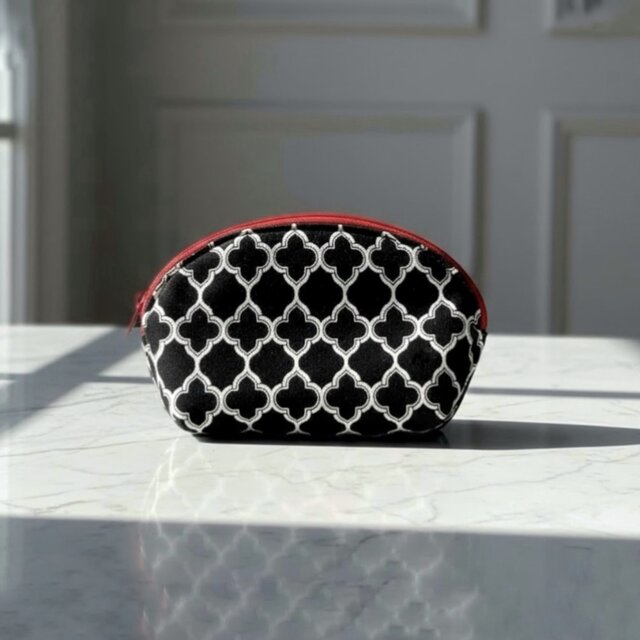 #モロッカン柄 #モロッカンポーチ #ラウンドポーチ #コスメポーチ #ファスナーポーチ #黒ポーチ #赤ファスナー #大人かわいい #スタイリッシュ雑貨 #上品小物 #おしゃれポーチ #高見え #ギフトにもおすすめ #大人女子アイテム #シンプルかわいい #モノトーン雑貨