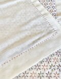 届きました!あみちゃんさんのふきんは、裏の模様もとてもきれいなのでなるべく両方みえる使いかたをしています。 さて、この横長、どう使おうかな、と考えるのが又楽しいです。ありがとうございました。