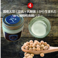 この『きんのばたぁ』は、乳酸菌の「発酵」の力をかりて出来る「大豆のチカラ +乳酸菌のチカラ」の恵みいっぱいの豆乳発酵バターです。