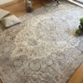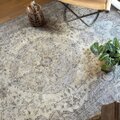 落ち着いたクリームとやわらかなブラウンのトーンでまとめられた、上品なヴィンテージメダリオンラグ。