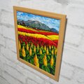 「秋日和のケイトウ」は、くじゅう花公園の秋に咲き誇るケイトウをテーマにした特別な油絵作品です。広大な敷地で、風に揺れる色とりどりのケイトウが、まるで炎のように生き生きと描かれています。赤や黄の鮮烈な色彩が秋の空気を一層彩り、訪れる人々の心を惹きつける瞬間を逃すことはできません。この作品は、見る者に秋の豊かさと大自然の美しさを感じさせ、心に温かな感動をもたらします。