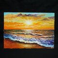 「夕日に染まる海」は、夕日の温かい光と共に、神秘的に染まる空と水平線の海、波、砂浜を描いた特別な油絵作品です。キラキラと輝く海面が、見る人の心に安らぎと感動を与えます。夕日と海を愛する方々に特におすすめの一作で、魅力的なひとときをお楽しみいただけることでしょう。