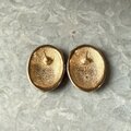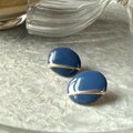 ゴールドトーンをベースにネイビーのエナメルペイントされたオーバルプレートピアス。