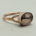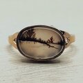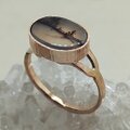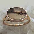 木々が茂る小高い草原ような風景*自然が撮影したセピア写真のようなとてもノスタルジックな指輪*まるで植物の枝や木の葉のような模様を見せるデントリティックアゲート、酸化鉄やマンガンがアゲートの微細な亀裂に浸透し、結晶化することで生まれます*手前の右傾斜とその奥に続く地形を想像させるような自然が生み出した唯一無二の芸術作品をお楽しみ下さい*ベゼル周りは筋状のテクスチャー、リングはアンティーク調の鎚目仕上げ、10~18号の範囲を目安に調整可能、サイズ確定後に細かい鎚目の覆輪で石留め致します*14kgfは真鍮を芯に14金の被覆が施され比較的アレルギーリスクが低く気軽にゴールドの輝きを楽しめるとして人気の素材となっております*