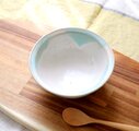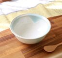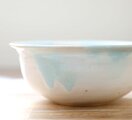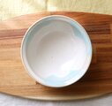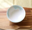 小さなリムのついた丸いボウルに成形し、艶やかな白釉をかけて焼き上げました。
