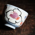 白地に赤青紫を基調とした絵付けが個性的で美しいです。