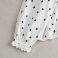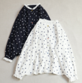 大人可愛いブラウスは、1枚でも可愛いですが、重ね着して、衿ぐりや袖口からフリルをのぞかせたり。