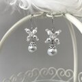 ホワイト パール フラワーモチーフ の ピアス 白 シルバー チェコガラス ビーズ クラシカル 雪 結晶 花