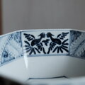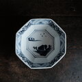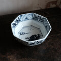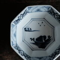 黒染付で素敵◆八角の形状。瀬戸焼 黒染付八角大鉢 骨董・antiques リーフ・鳳凰 大正~昭和初期
