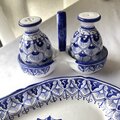 ブルー一色で描いたエレガントな幾何学模様。置いていくだけで食卓が華やかになります。