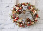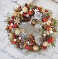 ナチュラルな木の実や松かさ、スターアニス、ワタカラといった自然素材に