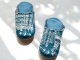 バブーシュ(革スリッパ)セルリアンブルー 大きめサイズの 新居祝いやクリスマスギフトにも◎