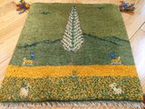 商品名: ペルシャ ギャッベ 風景 糸杉 ヤギ 緑色 黄色 Z950