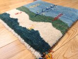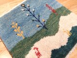 ●ペルシャ ギャッベ ミニマット ラグ 横41x40cm 青空 草原 T878