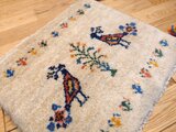 ●ペルシャ ギャッベ ミニマット 38x41㎝ アイボリー 孔雀 T7561G