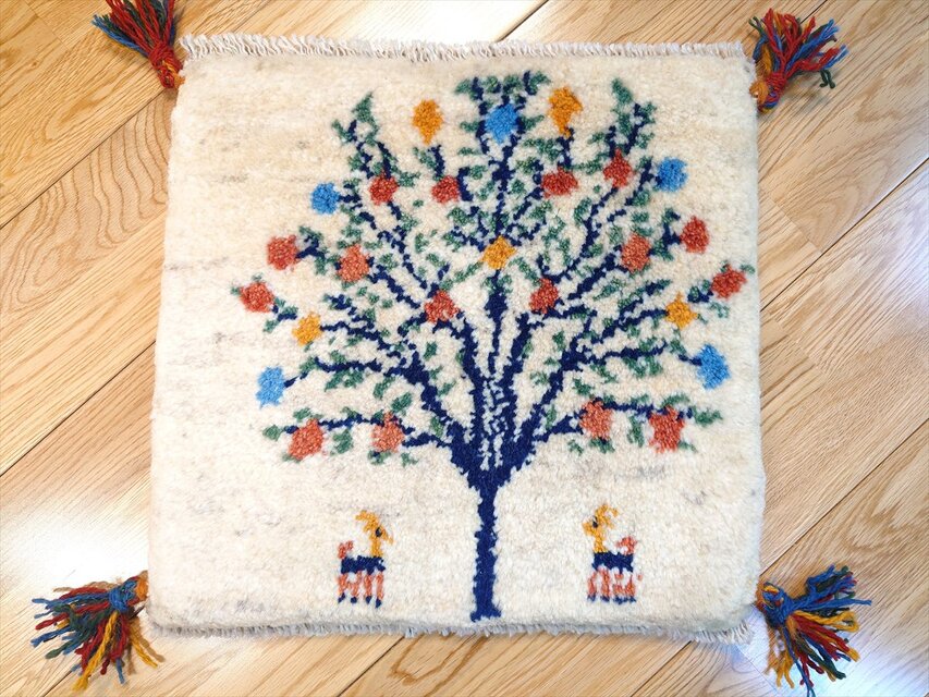 商品名: ペルシャ ギャッベ ザクロの木 ヤギ アイボリー Z1486