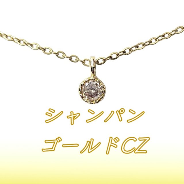 シャンパンゴールドキュービックジルコニアとゴールド枠が魅力的で美しいシンプルなネックレス