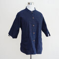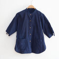 木綿 縞模様 バンドカラー ブラウス/袖紐付き・裾ポケット