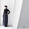 ウエストサイズはゴムを伸ばしていない状態でも M:約74㎝ L:約80㎝ と比較的大きめにお作りしていて、ベルトをしめてウエストジャストで履いても、下げてローウエストで履いても、なるべく楽に、きれいなシルエットになるようにデザインしています。