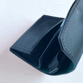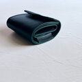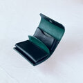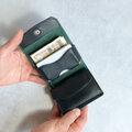 三つ折りコンパクト財布(ブラック×グリーン) イタリアンレザー バイカラー クリスマス 手縫い 本革 三つ折り財布