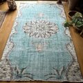 119×200 ティファニーの様なブルー メダリオン トルコヴィンテージラグ