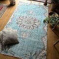119×200cmの使い勝手のいいサイズ、ティファニーのようなブルーが美しいトルコヴィンテージラグ。