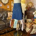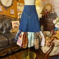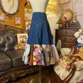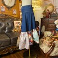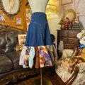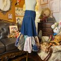 和洋折衷リメイク 浴衣 デニムスカート パッチワーク コラージュ ドッキング 切り替え レトロ 古着 ハンドメイド 0-88